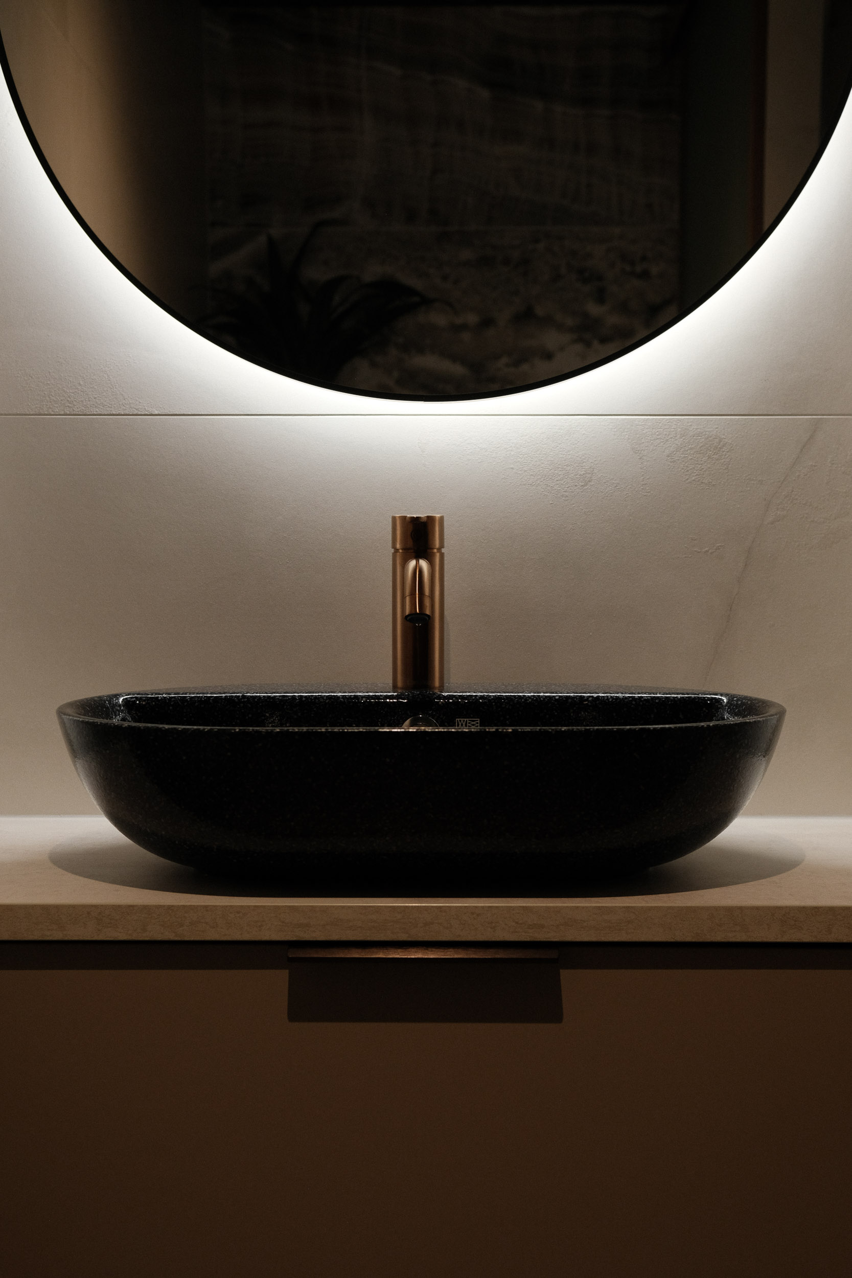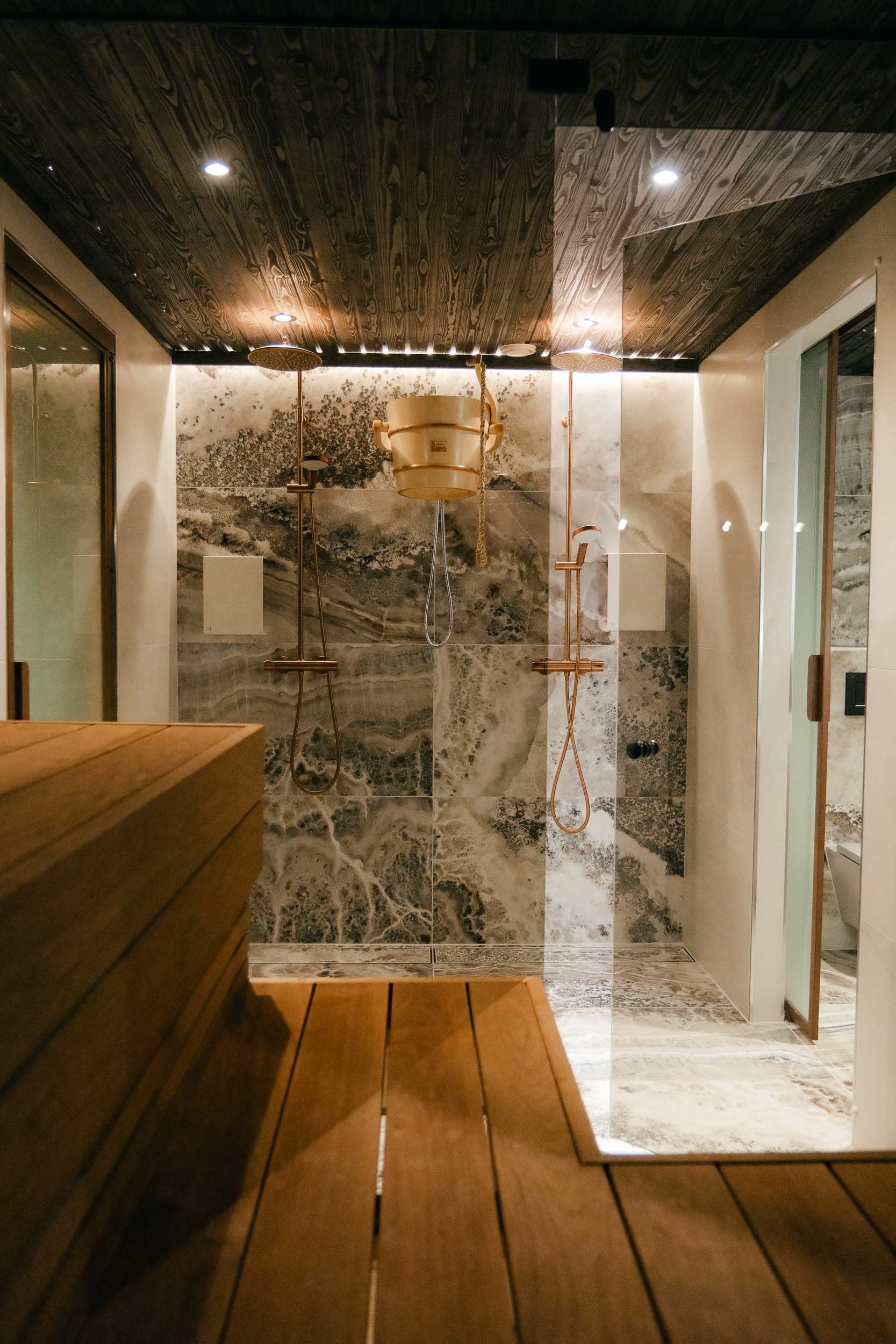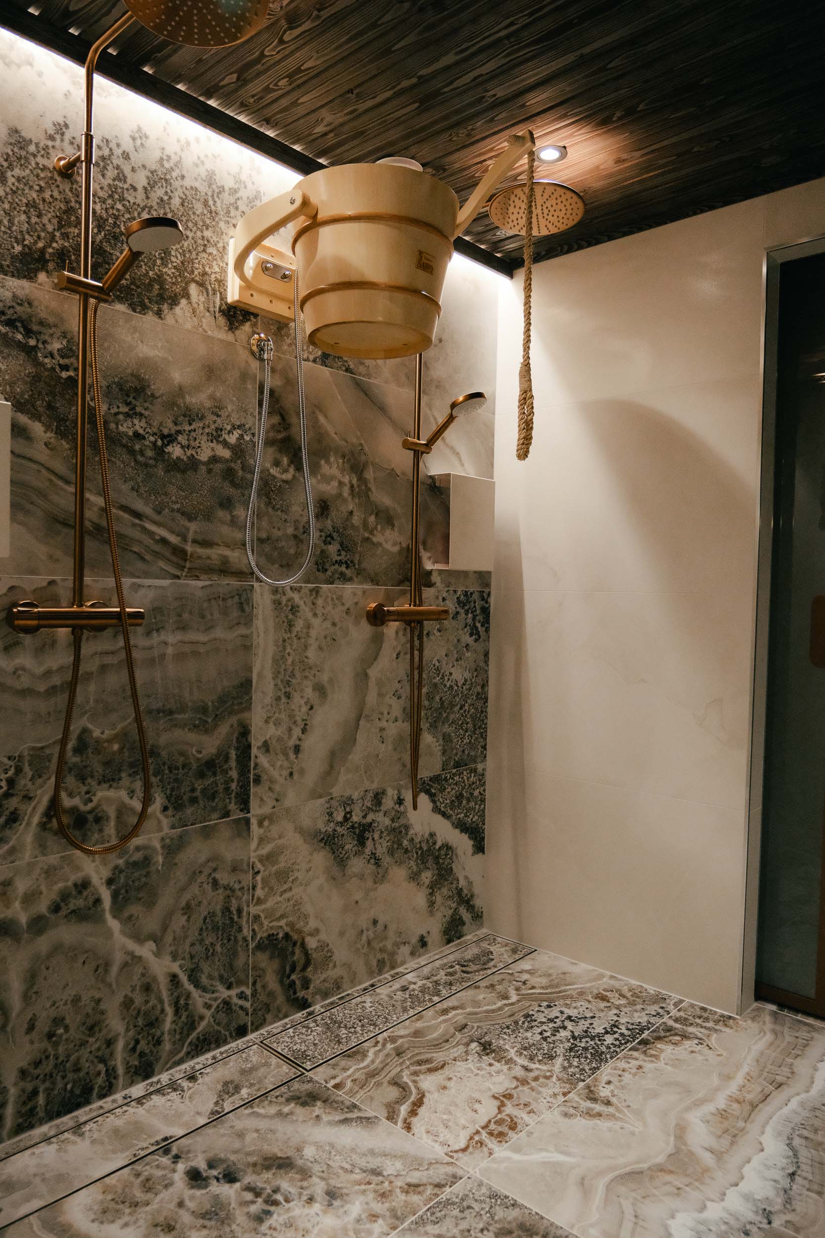 Laaja projekti sisälsi käytännössä koko kohteen sisustuksen ja materiaalivalintojen suunnittelun. Suunnitteluun kuuluivat muun muassa valaistus, tekstiilit, huonekalut sekä kokonaisvaltainen pintamateriaalisuunnittelu. Lisäksi kokonaisuuteen sisältyivät kylpyhuone- ja saunaratkaisut sekä keittiön, kylpyhuonekalusteiden ja säilytyskalusteiden suunnittelu yhteistyössä kalustetoimittajan kanssa. Kokonaisvaltainen suunnittelu ja eri osa-alueiden yhteensovittaminen varmistivat, että lopputulos on sekä esteettisesti yhtenäinen että käytännössä toimiva.